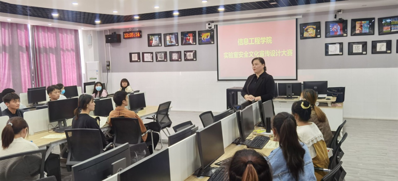 在证书颁发现场,崔琳经理从实验室安全文化宣传、数媒艺术设计专业竞赛评比及员工个人竞赛成长几个方面做了重要讲话。