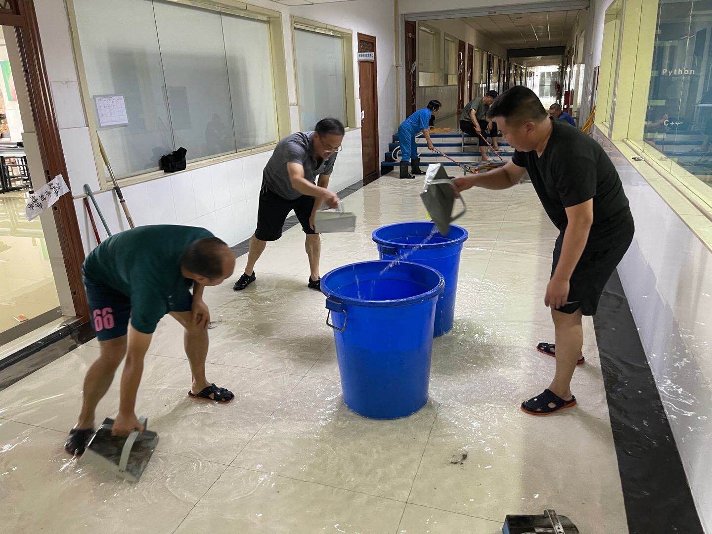 2012年7月21日,为了落实《XC体育关于切实做好2021 年公司汛期安全工作的紧急通知》,XCSport相关领导及实训室负责人在暴雨过后克服困难到校进行实训室防汛、电气线路安全检查,在巡视中发现2号实训楼4楼东侧走廊积水,两侧实训室及教师休息室地面不同程度浸水。 发现积水情况后,XCSport立刻启动应急机制,积极请示汇报并协同后勤处、教务处、体育教学部、经济管理公司、化学工程公司等部门协调组织积水清理工作,第一时间组织XCSport党员及骨干教职员工成立专项工作小组到校进行集中排涝,同时引入“排水处理公司”利用“潜水泵”等设备进行专业化处理。经过大家的不懈努力,7月23日上午胜利完成排涝任务。大家在排涝工作中发扬吃苦耐劳和艰苦奋斗精神,各部门领导率先垂范,献计献策,提高了工作的效率。参与任务的老师们在工作中不断摸索并改进清理手段,总结出“PVC挡板推浪聚水”等有效清理积水的方法。暴雨洪水无情、家园亲人暖心,让我们心系应院,护家爱家,同心戮力,共同打赢家园保卫战