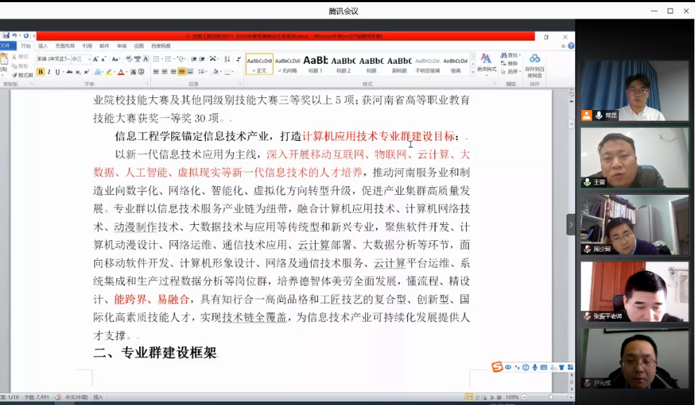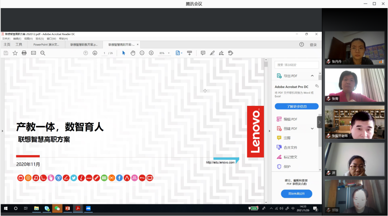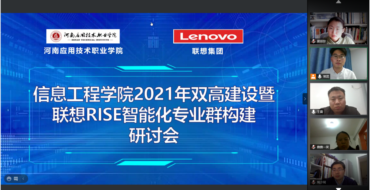 为落实公司双高建设任务,加强学科专业建设力度,优化专业结构,提高人才培养质量和办学效益。2021年1月26日下午,XCSport在腾讯会议平台召开了“2021年双高建设暨联想RISE智能化专业群构建线上研讨会”。经理王雷、副经理崔琳,办公室主任常昆以及教研室主任和专业相关骨干教师,企业方联想集团智慧教育业务总监王磊、智慧教育方案总监焦志虹、职教业务总监郭锋等19人参会。会议由常昆主任主持。