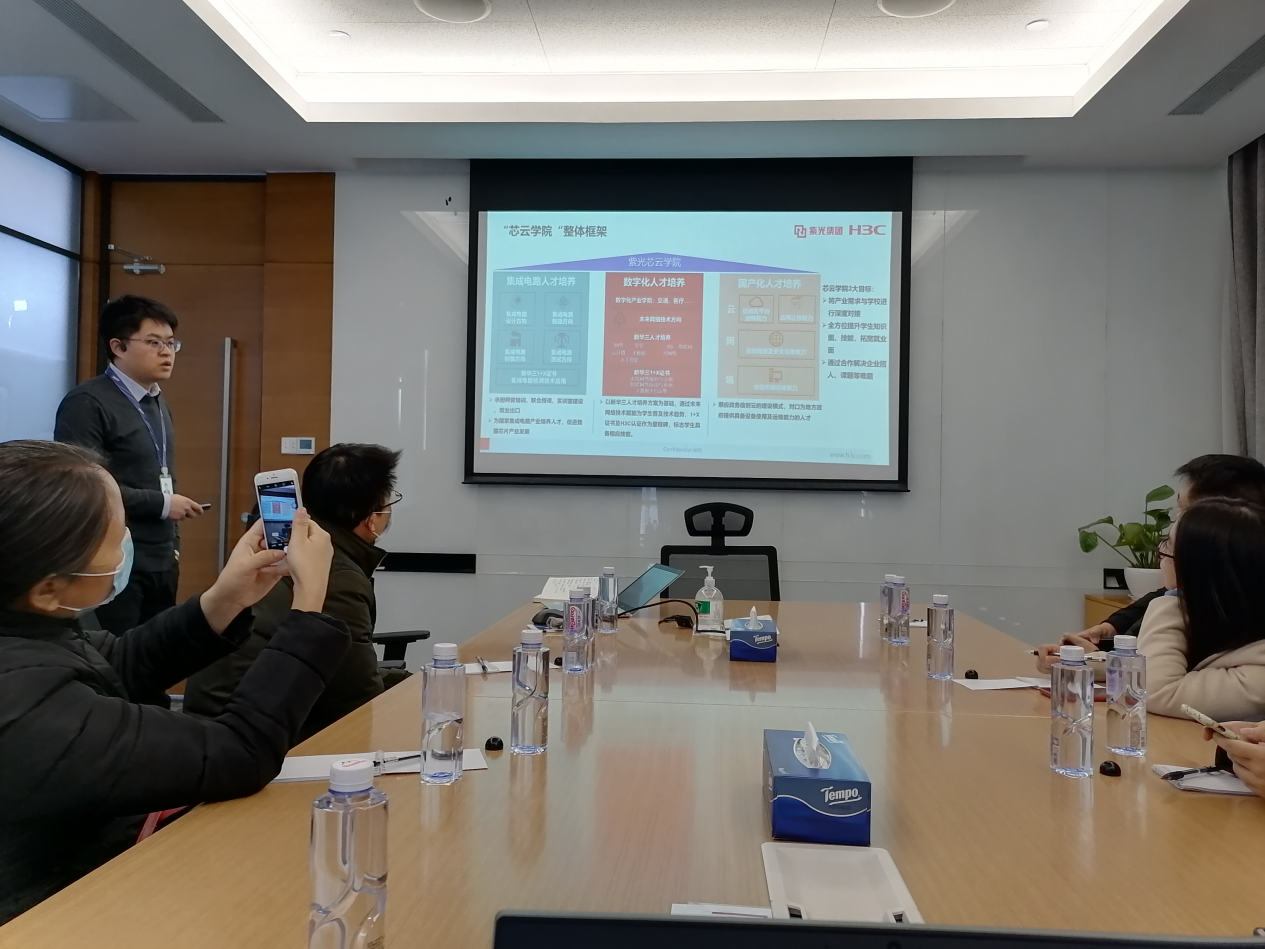 为提高人才培养质量,提升大数据技术、计算机网络技术等相关专业人才培养精准度,促进校企合作产教融合,01月28日上午XCSport经理王雷、计算机应用教研室主任吴华芹、网络通讯技术教研室主任郭璇及各专业负责人任立锋、张丹丹、谢妞妞等教师到新华三集团(以下简称H3C)大数据技术有限公司进行产教融合调研。