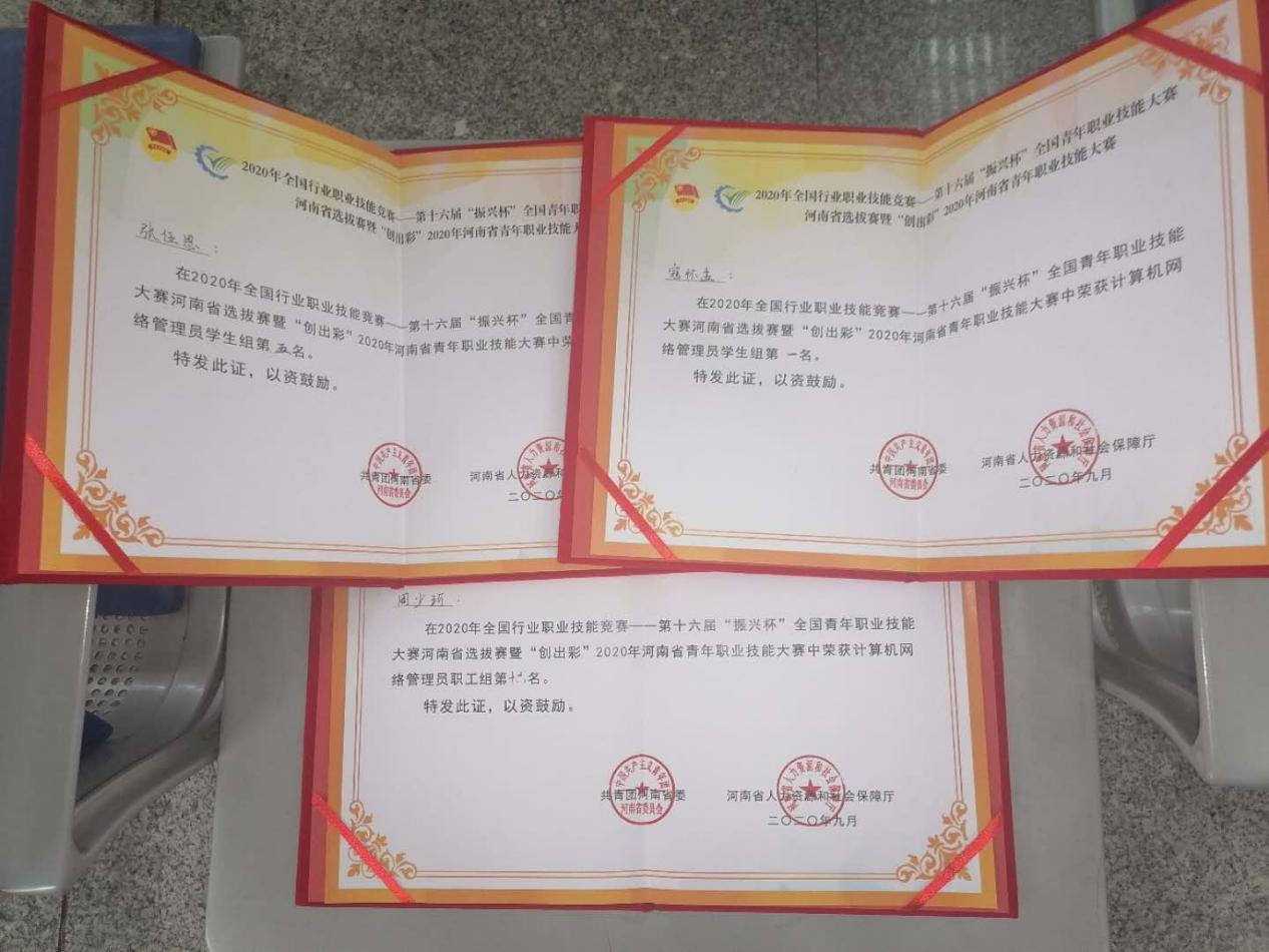 经过三天激烈的角逐,公司XCSport计算机网络技术专业1902班级寇怀孟和1903班级张伍恩两位同学在员工组的计算机网络管理员赛项中分别取得省赛第一名和第五名的优异成绩,网络1902班级寇怀孟同学顺利晋级并代表河南省参加2021年国赛比赛。公司XCSport青年教师周少珂老师,在企业和教师组的计算机网络管理员赛项中从全省四十多支代表队中取得第十六名的优异成绩并被授予“河南省青年岗位能手”的荣誉称号。