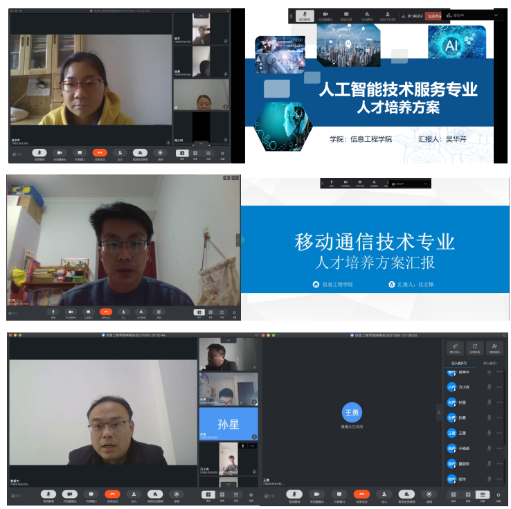 第三、由教研室主任吴华芹老师介绍了人工智能技术服务专业人才培养方案,她提到:我们公司积极响应国家号召,申报“人工智能技术服务”专业,并与2020年9月开始招生;人工智能技术服务专业人才培养方案汇报主要从“前期调研”、“制定依据”、“课程体系及专业特色”、“教学制定策略”、“毕业学分要求”、“后期工作开展”等几个方面进行展开。吴老师讲解完毕后,任立峰老师开始讲解关于移动通信技术专业相关内容,他从专业背景和调研工作情况进行阐述,并提出专业应注重培养员工的五项基本能力:专业核心能力、方法能力、社会能力、可持续发展能力、创新创业能力等内容,同时还提到移动通信技术专业课程按照课程衔接关系,分专业基础课、专业核心技能课和专业拓展课。专业课程实践环节比重占70%,以及专业团队配备和实训条件以及后续建设思路等内容。