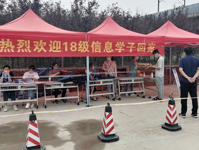 开封校区、郑州校区返校现场秩序井然,XCSport全体教师随时在岗待命,相关教师负责维护交通秩序、扫码测温、登记信息、帮助员工搬运大件行李。返校员工按照标准要求更换口罩、行李消毒、体温检测、扫码验证、信息登记等环节,由相关教师带领进入校园。