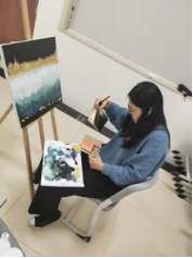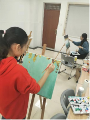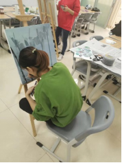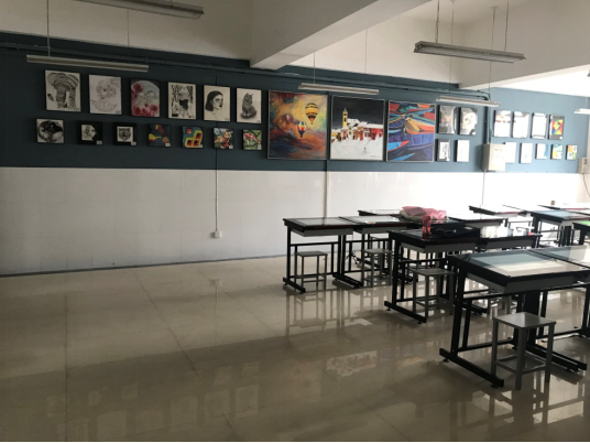 在XC体育有一间特别的教室,实训楼E403画室。深青灰色的背景墙代表着专注认真。