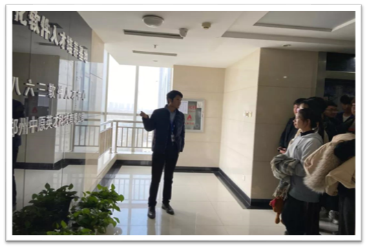 本次认知实习带队老师有吴华芹、谢妞妞、张扬、周少珂、刘卓、雷慧芳六位老师,每位老师负责一个班。在参观时间里,河南八六三软件股份有限公司的校企张银岗经理热情接待了员工们,并对同学们的到来表示了热烈的欢迎。