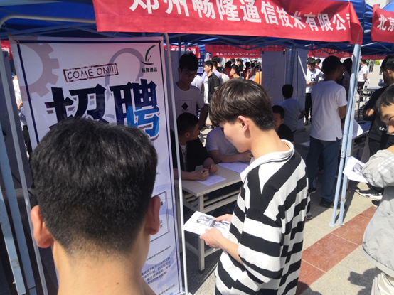 2019年5月21日下午,顶着炎炎烈日,XCSport企业招聘会在公司北广场举行。参会的企业有二十多家,其中招收计算机网络专业的企业主要有北京育源通信科技有限公司、郑州畅隆通信技术有限公司、河南八六三软件股份有限公司、郑州展云网络科技有限公司、河南华创教育科技有限公司、河南奇酷信息网络有限公司等近30家企业,现场场面十分热烈,2017级的同学们争先恐后地咨询并与企业初步签约。