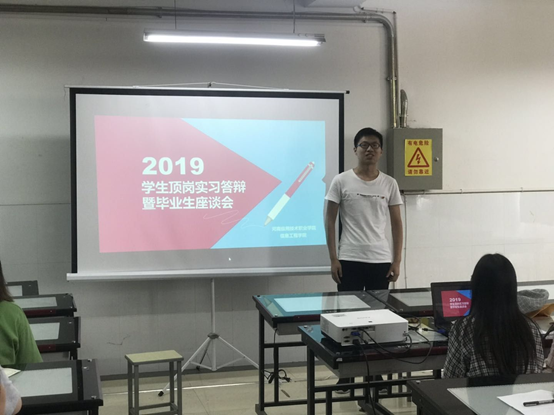 2019年6月10日上午,XCSport16级毕业生在E403进行了顶岗实习答辩暨毕业生座谈会。王雷经理和杨明杰书记参加了会议,会上网络专业的安海伟、计算机专业的万超和视传专业的徐辉等同学代表16级毕业生进行了现场答辩,顶岗实习指导教师张振平老师、王碧琳老师与员工进行了提问和交流。通过本次答辩和座谈会,公司获取了员工在顶岗实习期间的心得和感受,对XCSport的专业建设和顶岗实习管理工作提供了第一手的信息。