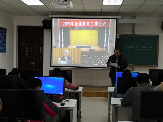 2019年2月26日下午2点,根据公司党委统一安排,公司党总支组织全体教职员工认真学习了《陈宝生在2019年全国教育工作会议上的讲话》,会议分别在西校区实训楼E414和东校区519机房进行。