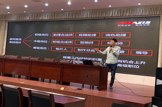 4月15日下午,来自时光坐标的公司的两位王老师在公司实训楼二楼大厅举办了一次关于设计师成长与进阶之路、当前影视传媒行业、后期制作所用的相关软件及岗位群分析的讲座,本次讲座由XCSport艺术教研室组织,2017级动漫制作技术和视觉传播设计专业的员工和动漫专业部分教师参加了本次讲座。