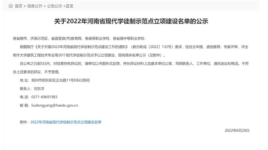 6月28日,河南省教育厅发布《关于2022年河南省现代学徒制示范点立项建设名单公示》,XCSport计算机网络技术专业被认定为河南省第二批现代学徒制示范点拟立项建设项目。