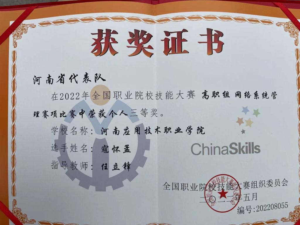 8月21至25日,2022年全国职业院校技能大赛(高职组)网络系统管理赛项在东营职业公司举行,来自全国各省(自治区、直辖市)的60支队伍参与本赛项,通过激烈角逐,由XCSport教师任立锋指导的寇怀孟同学荣获三等奖。