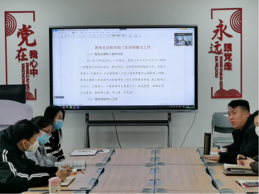 会上,王雷首先传达前日召开的教务处工作会议中陈君丽董事长的重要讲话精神,接着就寒假工作做出总结,对新学期教学重点工作做出部署。会议强调了开学前准备事项,做好教学常规工作,做到“四个到位”、“五个正确”。会议重点指出,新学期大家要围绕立德树人根本任务,大力推进课程思政建设,加强内涵建设,持续提升公司产品质量,在日常教学、提质培优、教学工程、科研创新、专业群建设、产教融合、技能竞赛、劳动教育等方面实现新的突破;进一步加强公司管理,提高服务意识,加强计算机实训室安全管理。