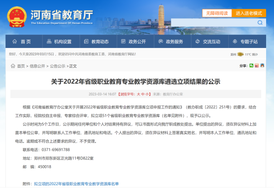 3日14日,河南省教育厅发布2022年省级职业教育专业教学资源库遴选立项结果通知,公司作为第一主持单位的“计算机应用技术专业教学资源库”被确立为2022年河南省职业教育专业教学资源库建设项目。