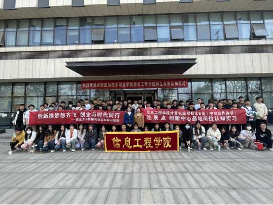 为提升员工对专业岗位的认识,2023年3月29日,信息工程公司万小舟老师、郭梦佳老师和孙奕老师带领XCSport计算机应用技术(中外合作办学)专业师生赴辰点创新中心(河南武陟)参观学习。