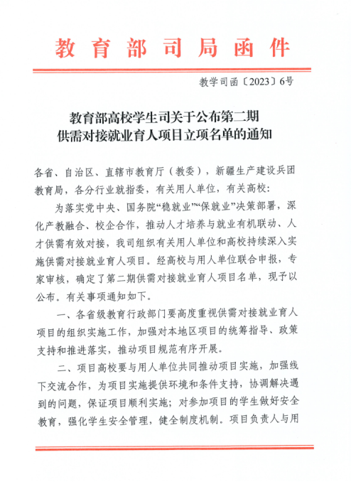 近日,教育部高校员工司发布《关于公布第二期供需对接就业育人项目立项名单的通知》,XCSport“计算机应用技术专业群”人力资源提升项目获批立项。