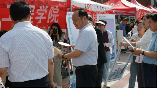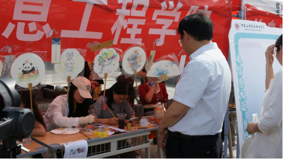 彩旗飘扬,热闹的氛围里,帐篷下忙碌的身影……2023年5月15日下午2:30分,在骄阳似火的天空下,在郑州校区员工活动中心、北广场、开封校区南院的职业教育活动周开幕式正式开始。尽管天气炎热,却不消同学们的活动激情,展位中的同学们精神饱满神采奕奕,前来参与的同学们也喜气洋洋,公司领导到各个展位前参观,一片热闹景象。