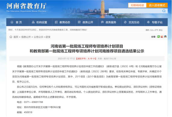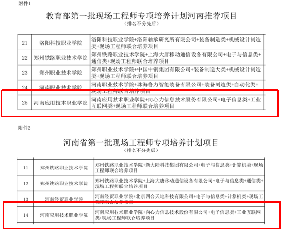 近日,根据《教育部办公厅关于开展第一批现场工程师专项培养计划项目申报工作的通知》(教职成厅函〔2023〕6号)和《河南省教育厅办公室关于开展第一批现场工程师专项培养计划项目申报工作的通知》(教职成函〔2023〕280号)要求,经公司申报、专家评审,公司申报的“XC体育+向心力信息技术股份有限公司+电子信息类+工业互联网类+现场工程师联合培养项目” 获评河南省第一批现场工程师专项培养计划项目和教育部第一批现场工程师专项培养计划河南推荐项目。