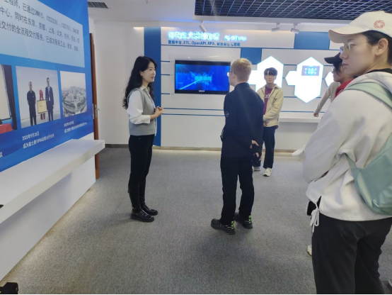 到达国家863软件园后,在企业代表张老师的带路和指引下,同学们首先参观了软件园科技展厅,了解了目前互联网行业流行的先进技术。然后参观了企业开发部,真实了解互联网行业开发人员的工作状态和工作内容。接着参观了大数据事业部和863软件园的成长历程展示墙,企业代表讲解了863软件园的发展过程,最后参观了863软件园下设的中原英才科技有限公司,据讲解员介绍这里是软件工程师的培养基地,向社会输送了许多软件开发人才。