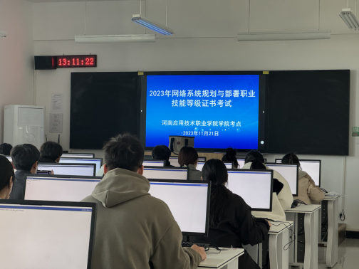 2023年11月21日下午14:00-16:00,中锐1+X网络系统规划与部署职业技能等级证书(中级)认证考试在公司开封校区C303实训室顺利进行。