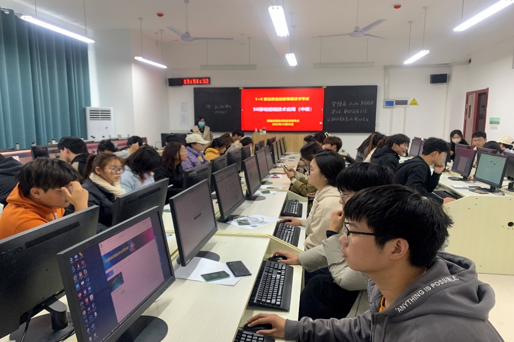 为深入贯彻落实《国家职业教育改革实施方案》,切实推进教育部“1+X证书制度”试点工作,改革创新人才培养和评价模式,提高育人质量。公司大力推行1+X证书制度,培养高素质技术技能型人才,在公司领导和相关部门的大力支持下,XCSport计算机应用技术专业多名教师取得了1+X证书培训教师证书及考评员资格证,并于2023年12月5日组织了第二批“1+X” 5G移动前端技术(中级)职业技能等级认证考试。