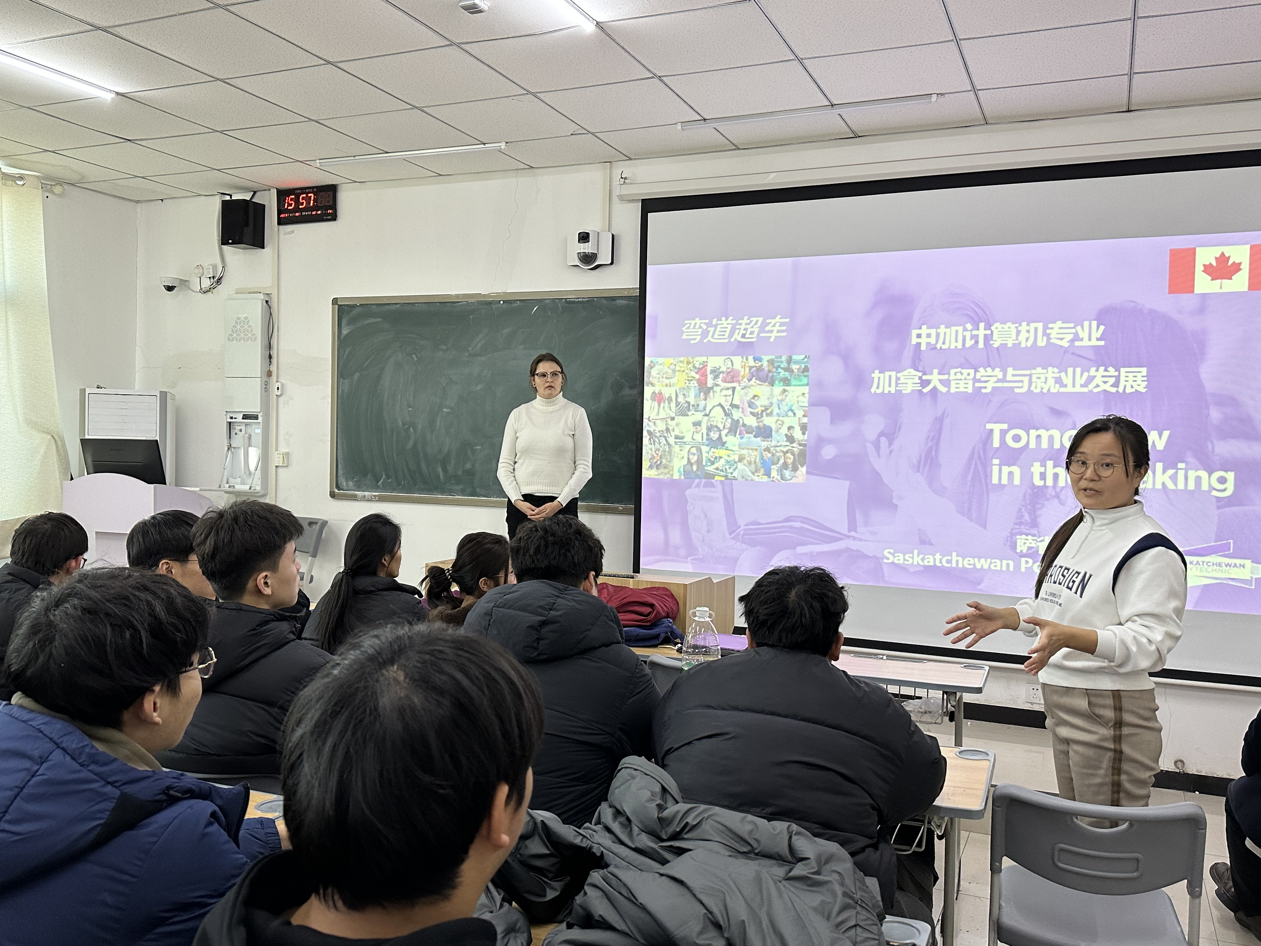 为进一步帮助22级计算机应用技术(中外合作办学)专业员工了解留学政策和国外的生活日常,解答相关外方课程学习问题,11月30日下午,XCSport邀请萨省理工公司校方代表Grace Liu刘主任、于国强主任和Jennifer老师在双创楼多媒体教室员工开设讲座并召开交流分享会。XCSport相关领导、项目负责人、相关专业教师以及22级全体员工参与。