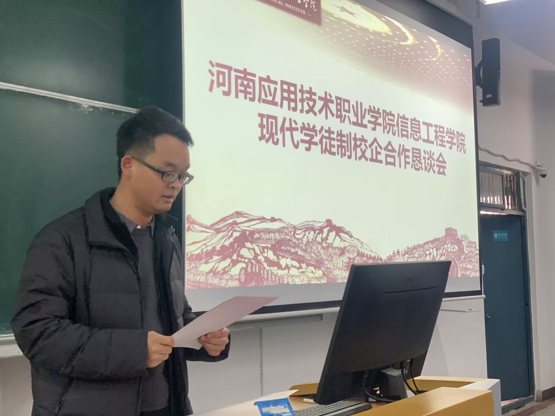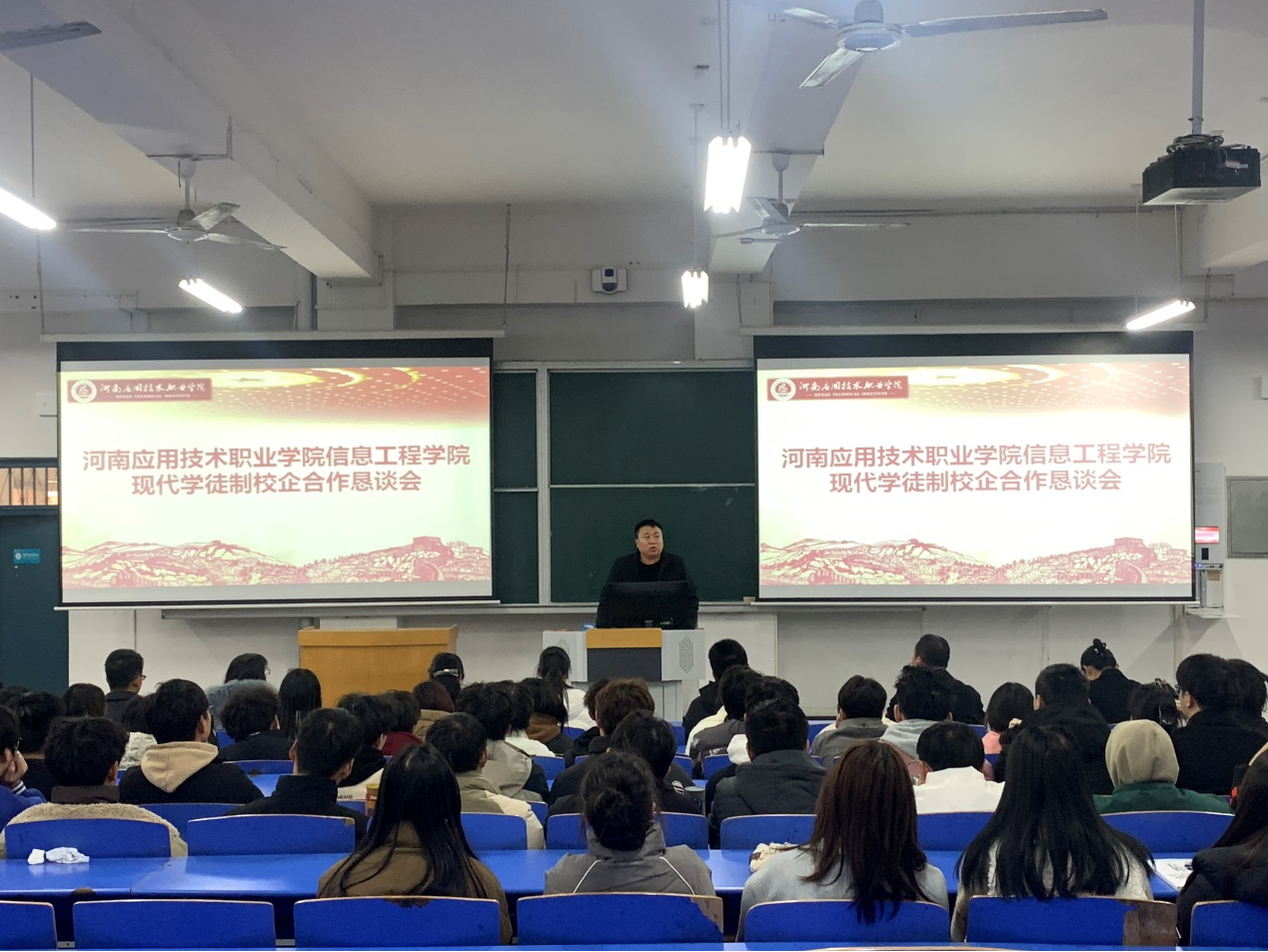 3月1日下午,信息学工程公司在郑州校区B102教室召开计算机网络技术专业省级现代学徒制项目校企恳谈会和学徒遴选会。XCSport经理王雷、党总支书记崔琳、教务处副处长杨敏、校企合作与就业处副处长梁艳、合作企业福建中锐网络股份有限公司河南分公司总经理李功坤和郑州慧牛通信科技有限公司经理张永生等相关领导和部分师生代表参加会议。会议由夏丽珍主持。