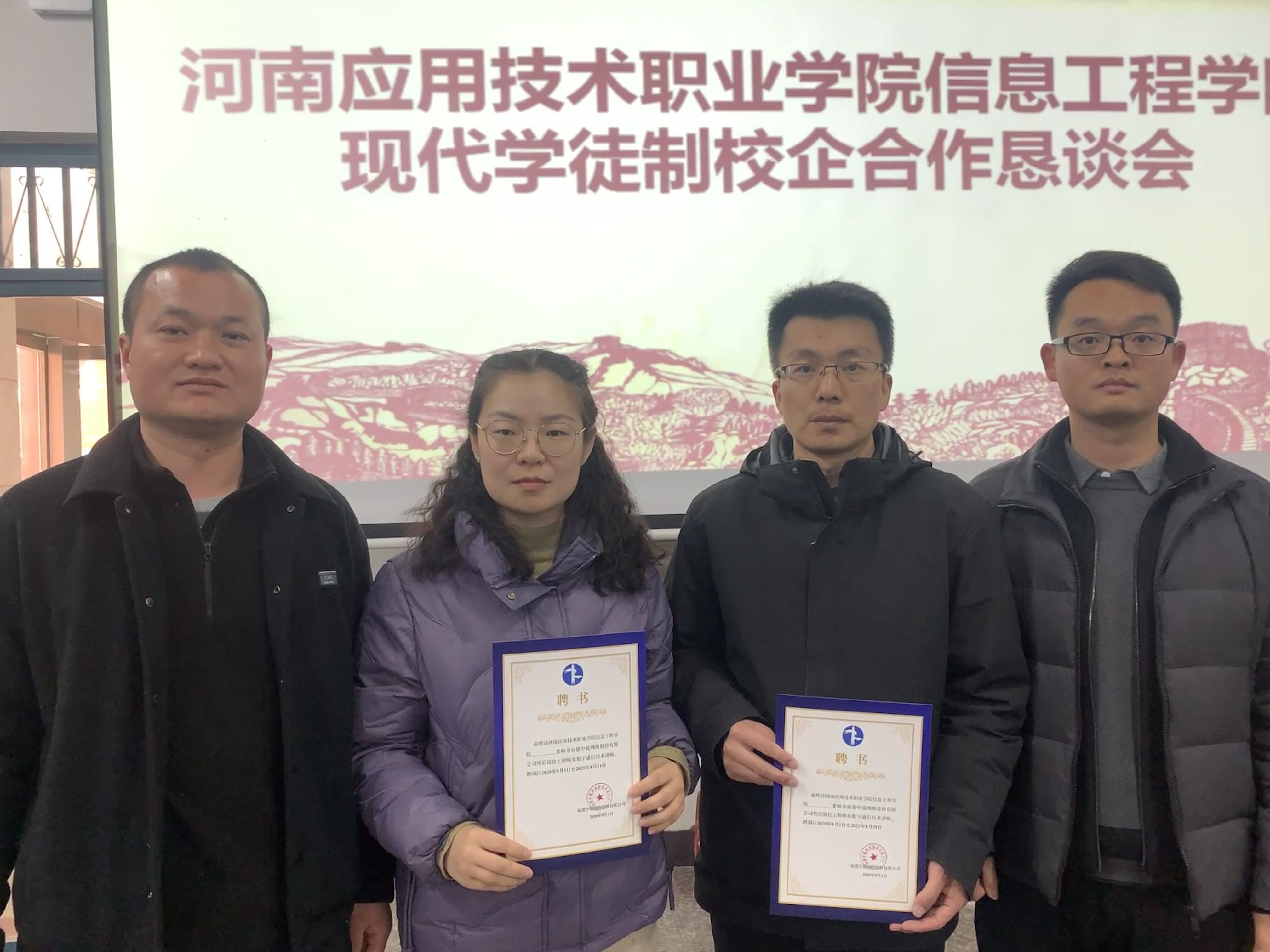会上,李功坤向郭璇和任立锋两位导师代表颁发了企业导师聘书。与会领导向员工代表颁发了现代学徒制学员证书。