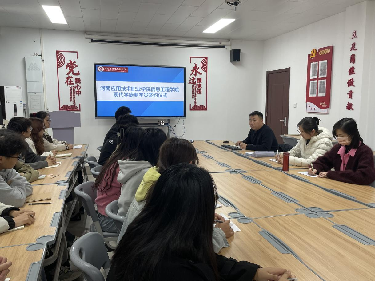 在签约仪式上,公司经理王雷和企业代表专家发表了热情洋溢的致辞。王经理强调了现代学徒制在职业教育中的重要性,就如何更好地开展现代学徒制下的人才培养工作进行了阐释和解读,分享了经验和看法。企业专家代表李功坤经理明确了就业指导工作应更加注重员工的个性化需求,加强与企业的沟通合作,以提升员工的就业竞争力和职业发展能力,随后详细介绍了协议内容、实习安排和注意事项,并鼓励员工们要珍惜机会,努力学习实践技能,为将来的职业发展打下坚实的基础。员工们纷纷表示将积极参与实习,努力提升自己的实践能力。辅导员李晨老师现场组织各位学员签订了现代学徒制学员协议。