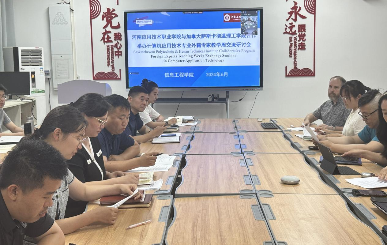 6月4日下午,XCSport在行政楼517会议室召开“加拿大萨斯喀彻温理工公司计算机应用技术专业中加合作办学项目中外教师交流研讨会”。中加国际合作项目主任、项目管理委员会委员Grace Liu 、项目管理专员Bruce Yu、加方专家Jason Schmidt、 Alex Wang, XCSport专兼职教师参加会议。会议由夏丽珍副经理主持。