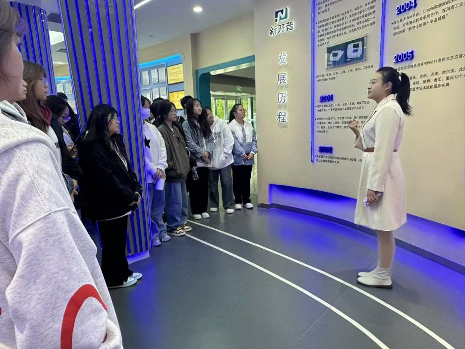 活动伊始,新开普电子股份有限公司企业代表对师生的到来表示欢迎。企业讲解员针对企业发展历程、生产经营、关键核心技术攻关及战略规划等方面展开详细介绍,同学们了解了新开普在智慧校园、农水、软件应用与智能终端等全场景建设的创新研究与落地成效,对企业的核心业务、企业文化以及行业优势有了更深入的认识。
