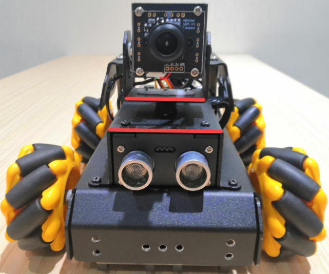在有限的模拟赛道上,三台智能小车正进行着"个性十足"的表演秀。首台配备着旋转的激光雷达和双目摄像头,这是"多传感器融合组"的得意之作。当工作人员突然放置临时路障时,小车立即通过雷达点云数据与视觉特征的时空对齐,在0.3秒内完成紧急制动并重新规划路径。第二台配备麦克纳姆轮的4驱黄色小车则展现出另一种技术感官——其车头正前方配备一对能发出七彩色光芒的超声波传感器。除此之外,另配有一个高清摄像头,摄像头被安装在一个自制的云台上,可以实现超过180度的广角扫描。员工开发者介绍道,通过将摄像头与超声波测距数据映射到同一空间坐标系,系统硬件低成本实现了商用级避障功能。
