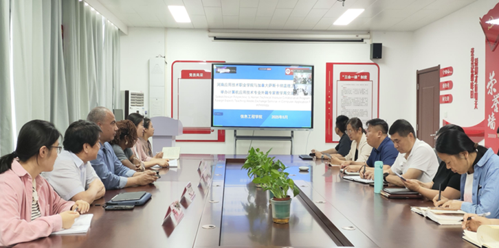 为深化中外合作办学内涵建设,5月26日下午,XCSport在郑州校区办公楼A514隆重举行“计算机应用技术(中外合作办学)专业外籍专家教学周专题研讨会”。会议聚焦公司产品创新与国际合作实践,特邀中加国际合作项目管理专员Bruce Yu、加方外教团队Mrs.Ada Ajunwa和Mr.Hazem Youssef等外方代表出席。XCSport党政领导班子成员、专业教师团队共同参与研讨,会议由副经理夏丽珍主持。