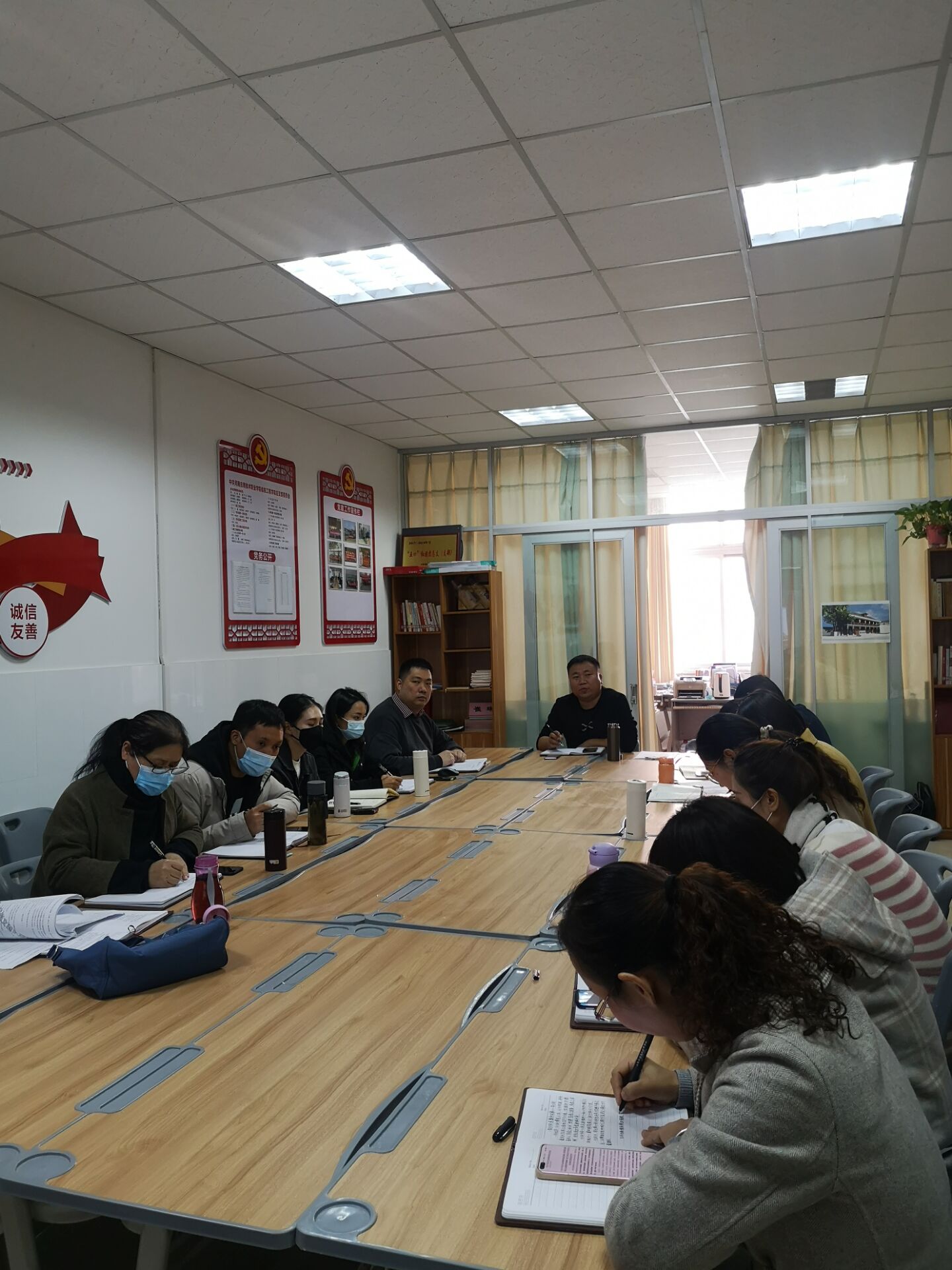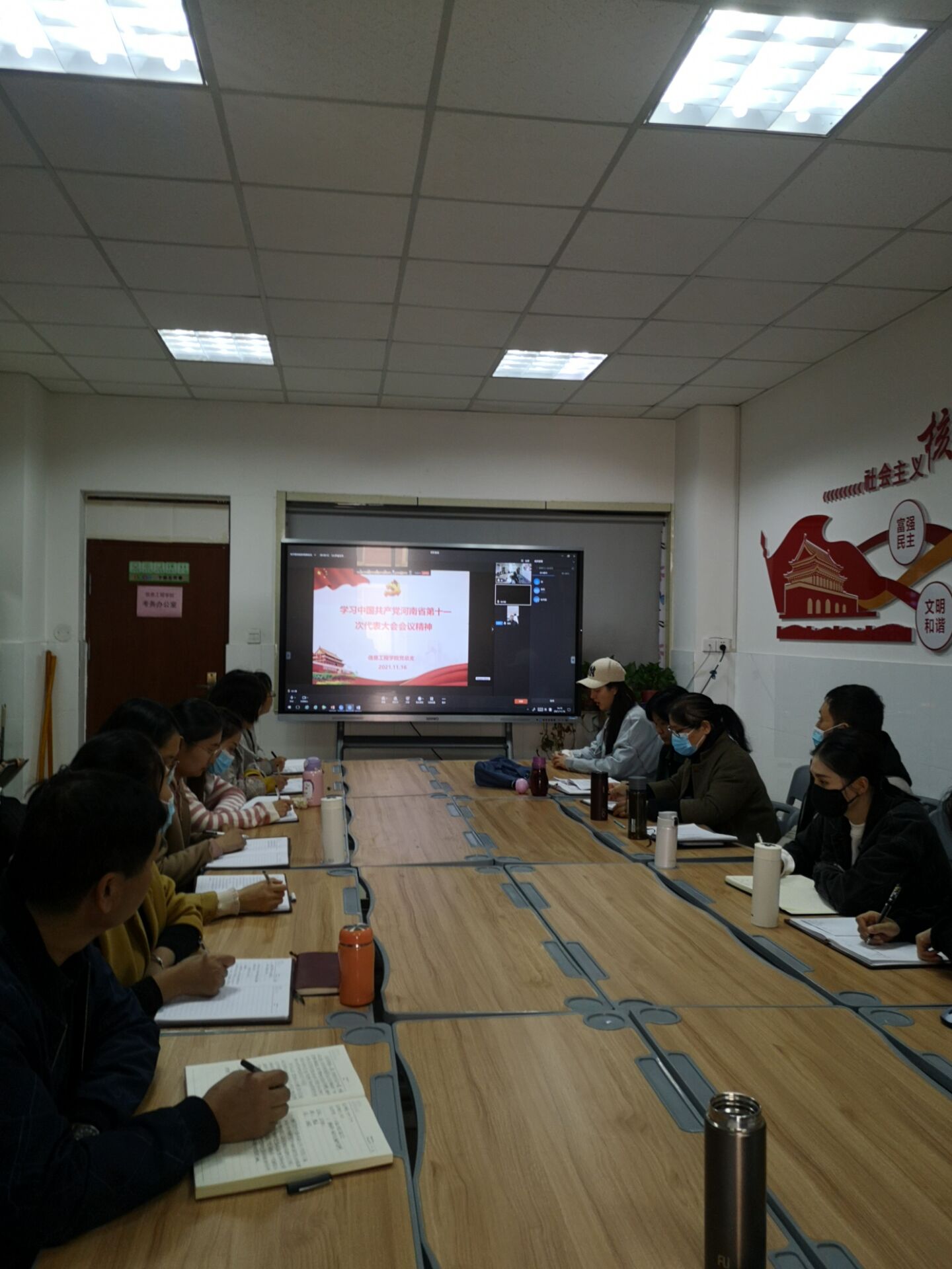 会上,党总支宣传委员张振平同志带领大家学习了《中国共产党第十九届中央委员会第六次全体会议公报》文件。百年征程波澜壮阔,百年奋斗成就辉煌,党的十九届六中全会从党和国家事业发展的战略全局出发,深入研究党领导人民进行革命、建设、改革的百年历程,全面总结党从胜利走向胜利的伟大历史进程、为国家和民族建立的伟大历史功绩,审议通过了《中共中央关于党的百年奋斗重大成就和历史经验的决议》。这是党的十九届六中全会的重要历史贡献,对于全党更加紧密地团结在以习近平同志为核心的党中央周围,进一步增强“四个意识”、坚定“四个自信”、做到“两个维护”,团结带领全国各族人民夺取新时代中国特色社会主义新的伟大胜利,具有重大现实意义和深远历史意义。会上老师们积极讨论并做了学习笔记。