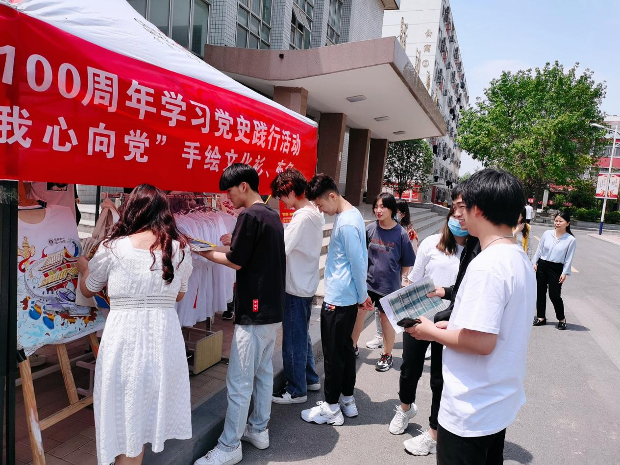 义卖当天,XCSport把动漫制作技术和视觉传达设计专业的部分师生经过20多天精心手工绘制有党史学习主题图案的50件文化衫和40个布包全部展示出来,引起了全校师生的强烈共鸣,他们被这些作品的精美的画工和巧夺天工的构思所吸引,纷纷前来围观、购买,奉献自己的一片爱心。