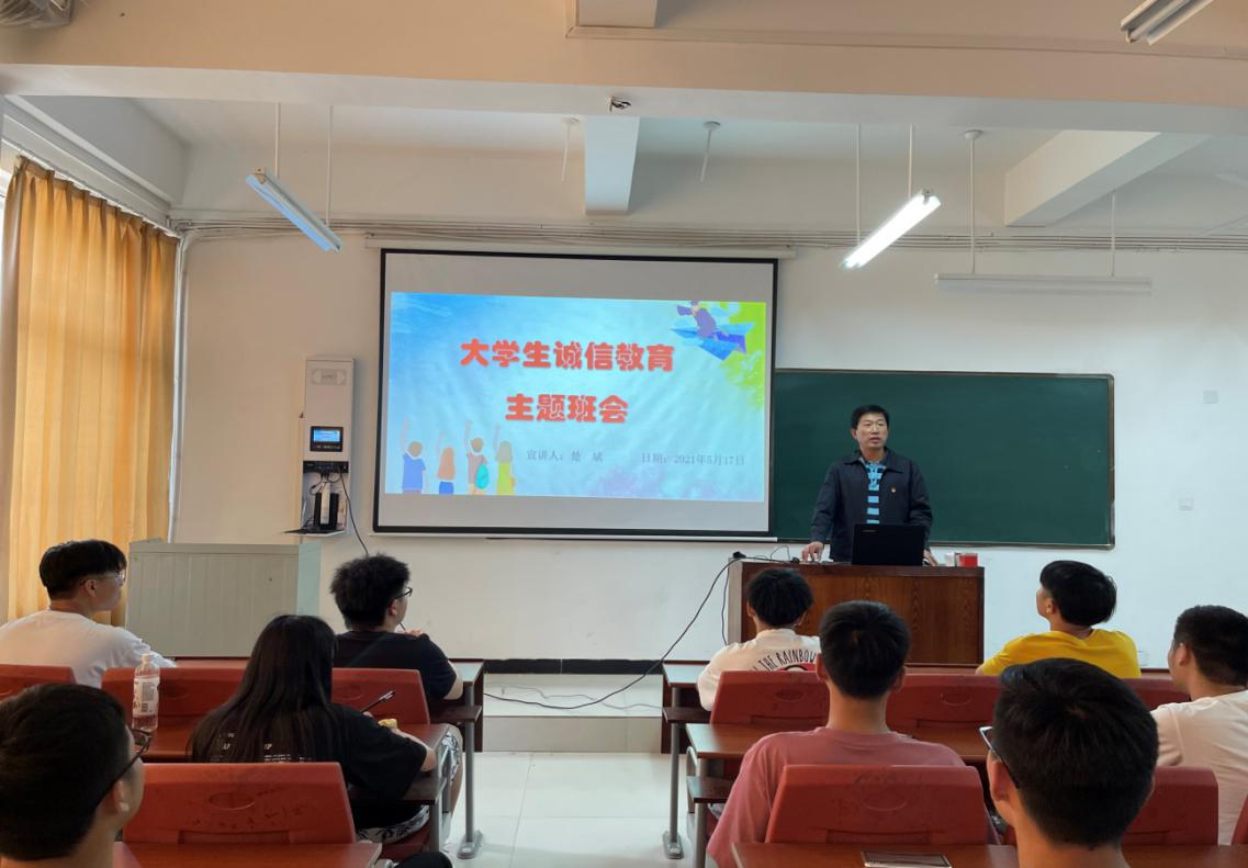 为贯彻公司“学党史 悟思想 办实事 开新局”党史学习教育要求,认真落实“三进三带”精神,按照XCSport党总支党员联系班级工作制度要求,5月17日中午,公司党总支书记楚斌在东校区教学楼102教室与所联系的5G2001班召开了主题为“老员工诚信教育”主题班会。