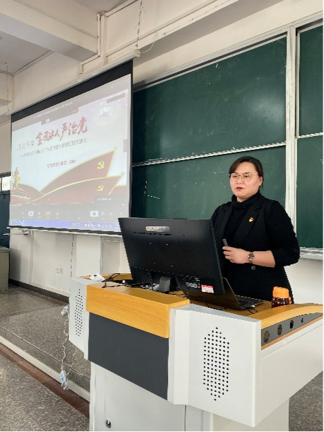随后,崔琳老师与大家一起学习全面从严治党重要论述,深入分析当前反腐败斗争形势,剖析身边典型案例,以案警示、以案说纪、以案说法,引导告诫同学们严明政治纪律政治规矩,使铁的纪律真正转化为自觉遵循。