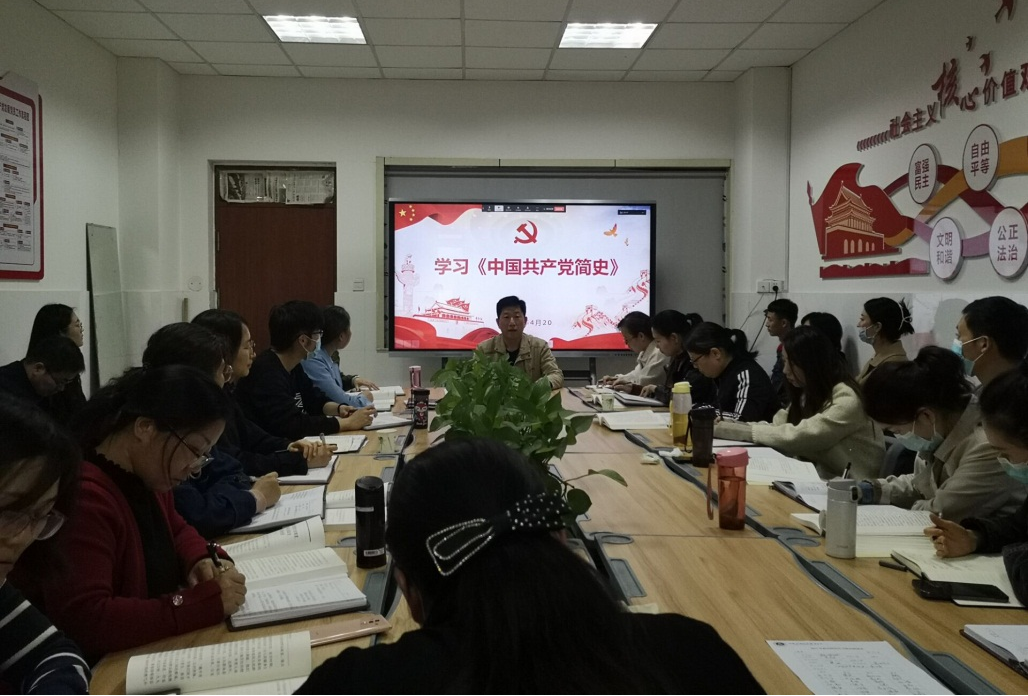 会上,楚斌书记带领大家,集中学习了《中国共产党简史》第四章夺取新民主主义革命的全国性胜利。历史证明了只有在中国共产党的领导下才能彻底摆脱失败的厄运,从胜利走向新的胜利。因为中国共产党从诞生之日起,就把为中国人民谋幸福,为中华民族谋复兴作为自己的初心使命,顽强斗争,奋勇前进。楚书记要求全体党员教师要坚定理想信念,厚植爱国情怀,以实际行动庆祝建党一百周年。