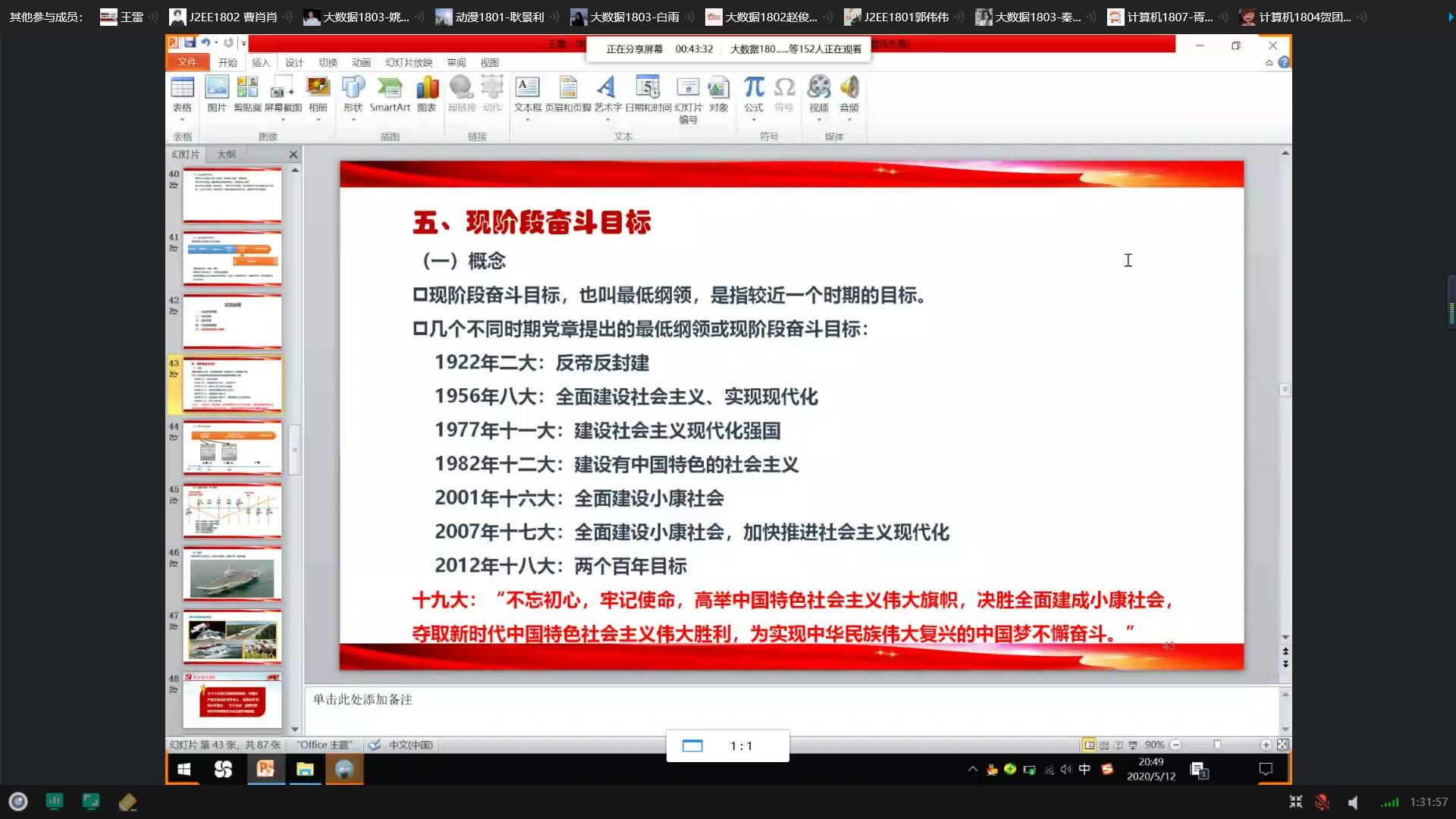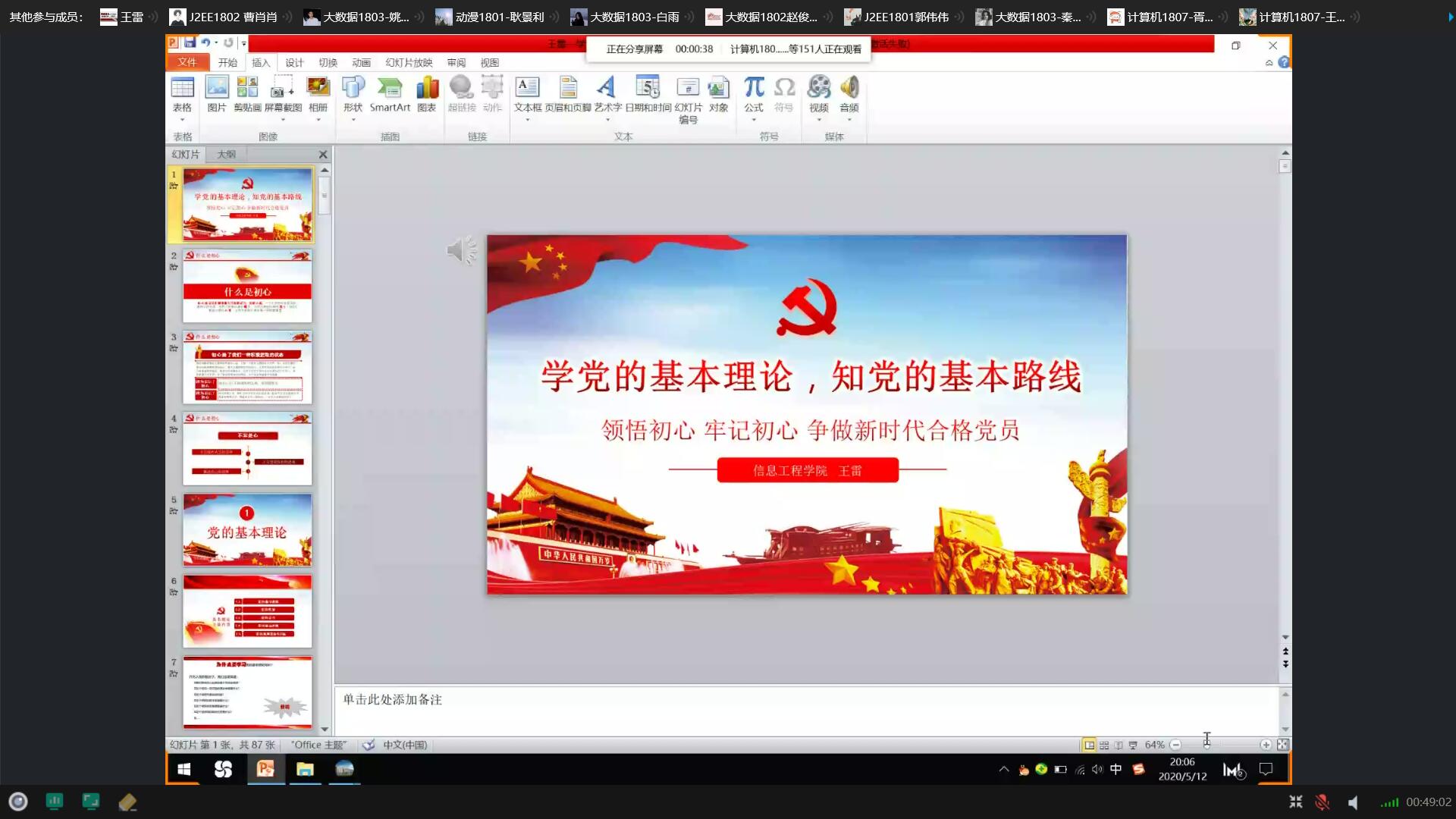 为深入学习党的十九大精神,贯彻落实习近平新时代中国特色社会主义思想,不断增强入党积极分子对党的基本理论、基本路线、基本方略的认识,2020年5月12日XCSport王雷经理通过QQ群屏幕共享为154名入党积极分子讲述了党课培训第四讲《党的基本理论、基本路线、基本方略》。