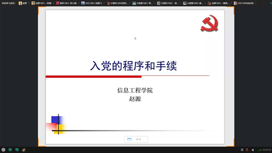 为引导入党积极分子进一步了解入党程序和履行入党手续。2020年5月26日晚,XCSport团总支书记赵源老师通过QQ群屏幕共享为153名入党积极分子讲述了党课培训第八讲《入党程序和手续》。