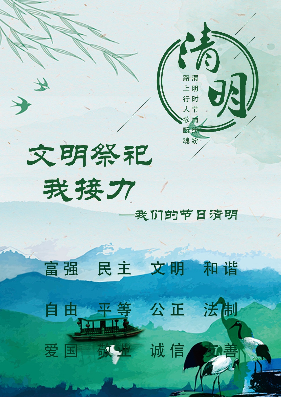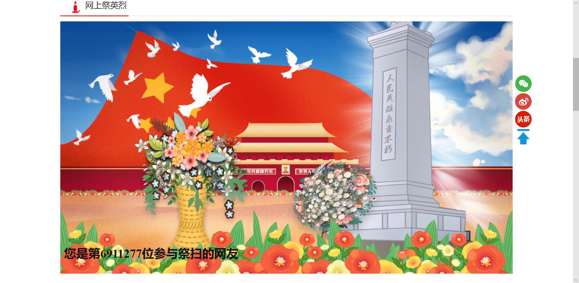 清明祭英烈,共铸中华魂!在这个特殊的节日里,让我们通过这种特殊的方式和创新的体验,来感悟、感恩、缅怀革命英烈,同时向新冠肺炎疫情中牺牲和殉职的英雄致敬,向不幸罹难的同胞致哀,让缅怀从“指尖”上升华。让我们做文明祭祀的带头人,把对革命先烈的悼念和对故人的思念,化作爱祖国、爱家乡的情怀,以实际行动向为中华民族和中国人民作出贡献的英雄先烈们致敬!