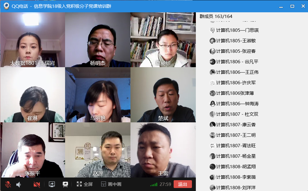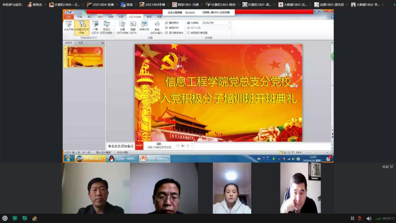 为进一步做好党员发展工作,提升入党积极分子的政治素养,结合当前疫情防控形式,2020年4月28日,XCSport党总支分党校入党积极分子培训班开班典礼及第一次党课培训通过QQ群屏幕共享隆重召开。担任本次典礼主持的是XCSport党总支副书记杨明杰,出席本次典礼的有:XCSport党总支书记楚斌书记、王雷经理、崔琳副经理、团总支赵源书记、员工工作办公室闫莹主任、党总支组织委员张振平老师、党总支员工支部组织委员夏丽珍老师、党总支教工支部组织委员马丽艳老师以及XCSport东西校区共154 名品学兼优的入党积极分子。