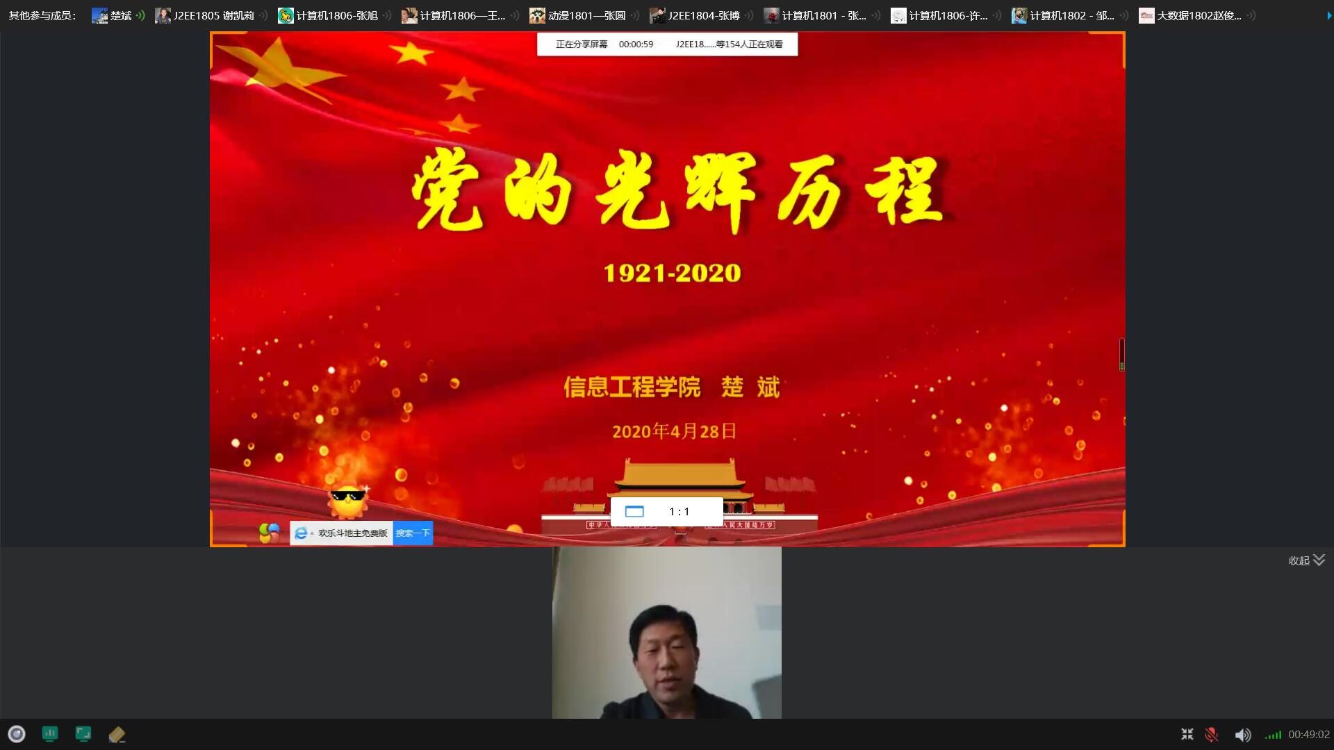 开班典礼结束后,公司党总支楚斌书记通过QQ群屏幕共享为入党积极分子们讲述了第一讲《党的光辉历程》。