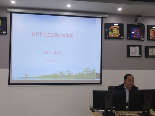 为扎实开展好“不忘初心、牢记使命”主题教育,2019年10月15日,公司党委委员、副经理薄新党同志在E414为XCSport党总支全体党员和职工上了一堂生动有意义的党课。薄经理围绕着践行社会主义核心价值观,采用大量案例深入剖析、细致讲解。薄经理的党课主要分为四个内容: