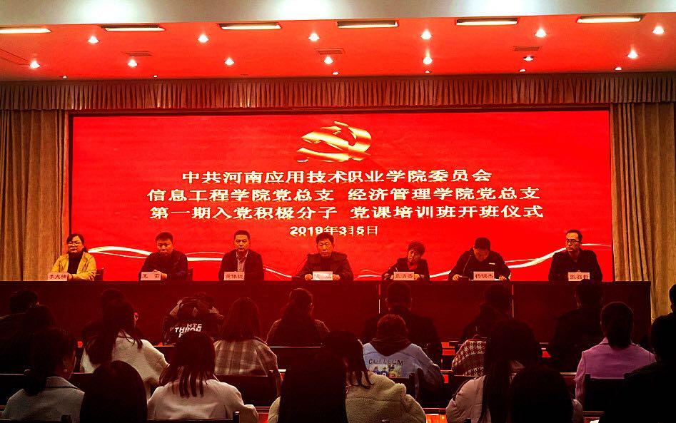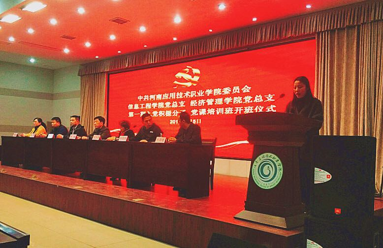 2019年3月5日下午,XCSport党总支、经济管理公司党总支第一期入党积极分子党课培训班开班仪式在实训楼二楼会议室隆重举行。两总支书记及全体支委委员、本期入党积极分子出席大会。XCSport党总支副书记杨明杰主持大会。大会开始,杨明杰书记宣读了此次培训班的具体通知,随后,XCSport刘雅迪同学代表本次培训班学员发言。