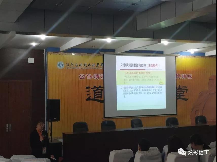 课堂上李小闯老师首先以你为什么要入党为主题与同学们进行了一些互动,看同学们对党是否有了解。然后进一步分析总结了个人入党的内在原因以及真实目地。第二节课袁清香老师给大家讲述了申请入党和中国共产党员的基本条件(主观条件与客观条件),使大家对入党的要求有了更明确地认识。