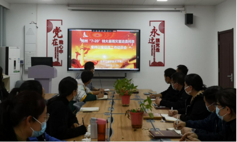 首先,楚斌书记宣读了公司开展郑州“7·20”特大暴雨灾害追责问责案件以案促改工作实施方案,并做了详细的安排部署。他要求全体教师切实提升政治站位,提高思想认识,把以案促改作为重要的政治任务,切实把查摆问题、整改问题与提升能力、锤炼作风相结合,强化督查指导,对督导检查中发现的问题,责令相关负责人限时整改,有效提高公司的抗疫防灾减灾救灾能力和应急处突能力,确保公司决策部署落实。