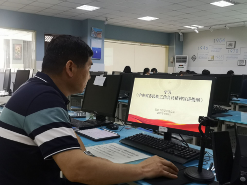在赵源的带领下,大家集中观看保密公益宣传片、大型保密纪录文献片《胜利之盾》;集中学习《高校师生保密知识读本》中第一讲的内容、《学习习近平新时代中国特色社会主义思想学习问答》之二、之三内容;学习《完整准确全面贯彻新发展新理念锚定“两个确保”实施“十大战略”确保“十四五”规划落地见效》等文件。之后,在党总支宣传委员张振平带领下学习《中央省委民族工作会议精神宣讲提纲》。学习结束后,大家围绕本次政治学习进行交流研讨。
