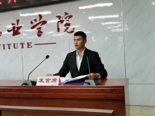 仪式在庄严的国歌声中拉开序幕,本科部2020级员工武鹏宇代表全体学员作表态发言。