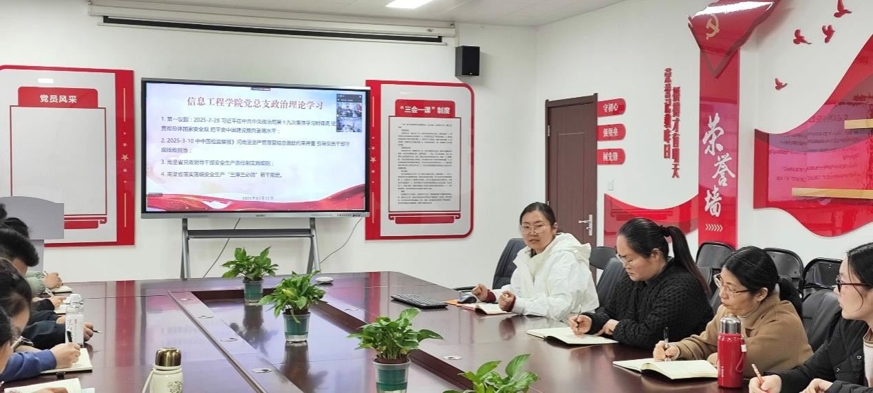 2025年3月11日,XCSport党总支组织郑州、开封两校区全体党员及教师,在郑州校区A514、开封校区F314以腾讯会议视频连接,开展政治理论学习活动。本次学习活动由XCSport副经理夏丽珍主持,全体党员及教职工参加会议。主要学习内容有:1.第一议题:习近平在中共中央政治局第十九次集体学习时强调 坚定不移贯彻总体国家安全观 把平安中国建设推向更高水平;2. 《中国纪检监察报》河南坚持严管厚爱结合激励约束并重 引导党员干部守底线敢担当;3. 河南省党政领导干部安全生产责任制实施细则;4. 河南省落实落细安全生产“三厚三必须”若干规定。