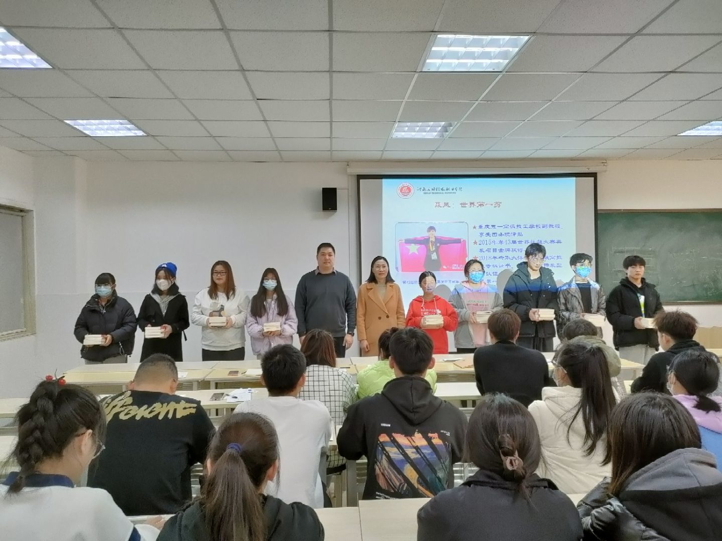 活动伊始,首先由赵源老师和徐娟老师为同学们赠予相关书籍,旨在让他们充满梦想与希望,更深入的学习、弘扬“工匠精神”;之后,黄群教授为同学们进行了一场《弘扬工匠精神 技能成就梦想》的知识讲座,主要通过讲述一些我国具有奋斗精神、工匠精神的真实事例让同学们从中获得具有工匠精神的知识与力量,并向同学们介绍了一批批优秀劳动楷模及公司往届优秀毕业生典范,让同学们感受到了榜样的力量,从而更加鞭策自己向大国工匠的目标奋进。在老师慷慨激昂的演讲中同学们也感慨良多,铭记于心,力求在将来的学习、生活和工作中把平凡的事干到极致。